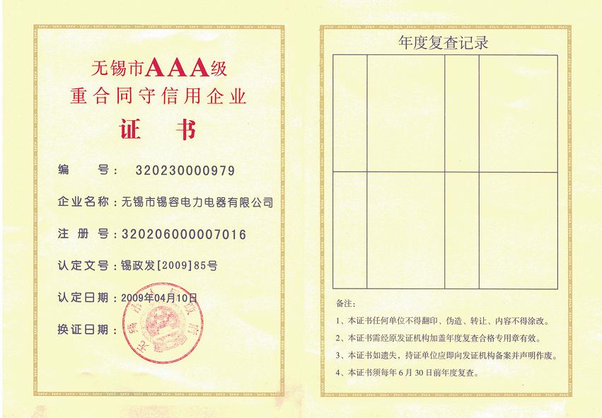 Wuxi AAA-level contract and trustworthy enterprise