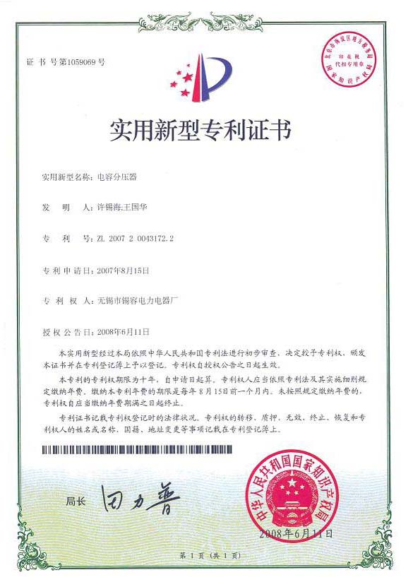 Utility model patent certificate