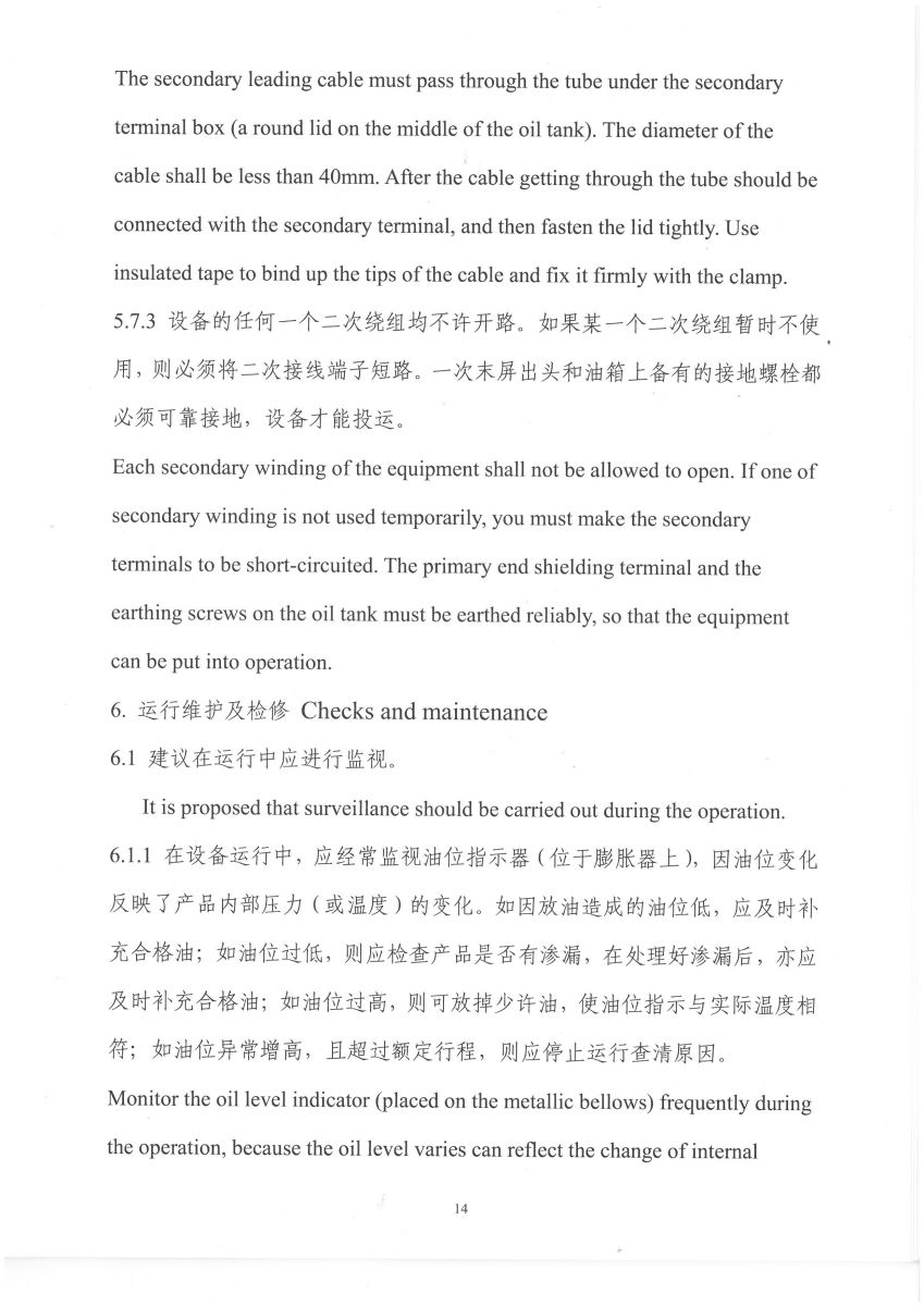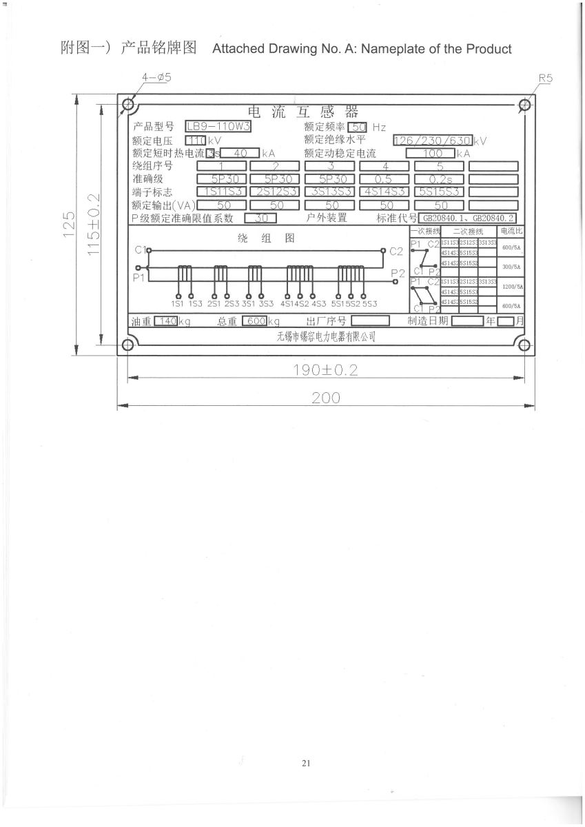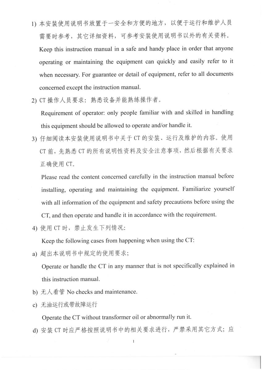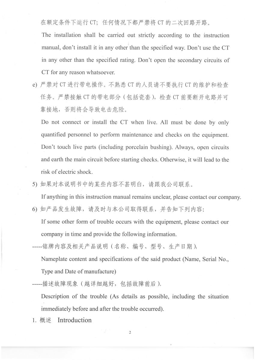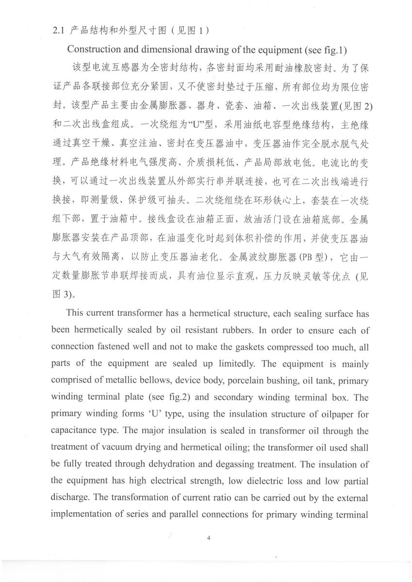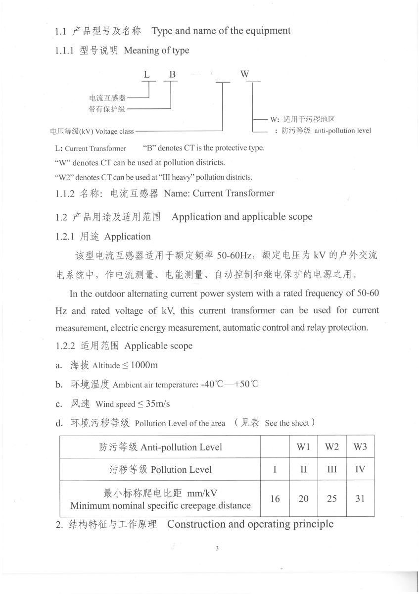 電流互感器中英文說明書